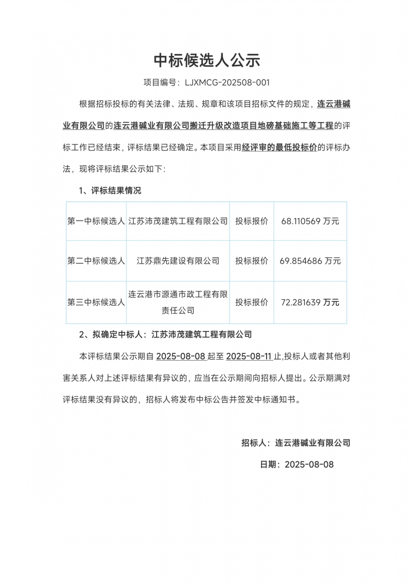 搬遷升級改造項目地磅基礎(chǔ)施工等工程中標候選人公示