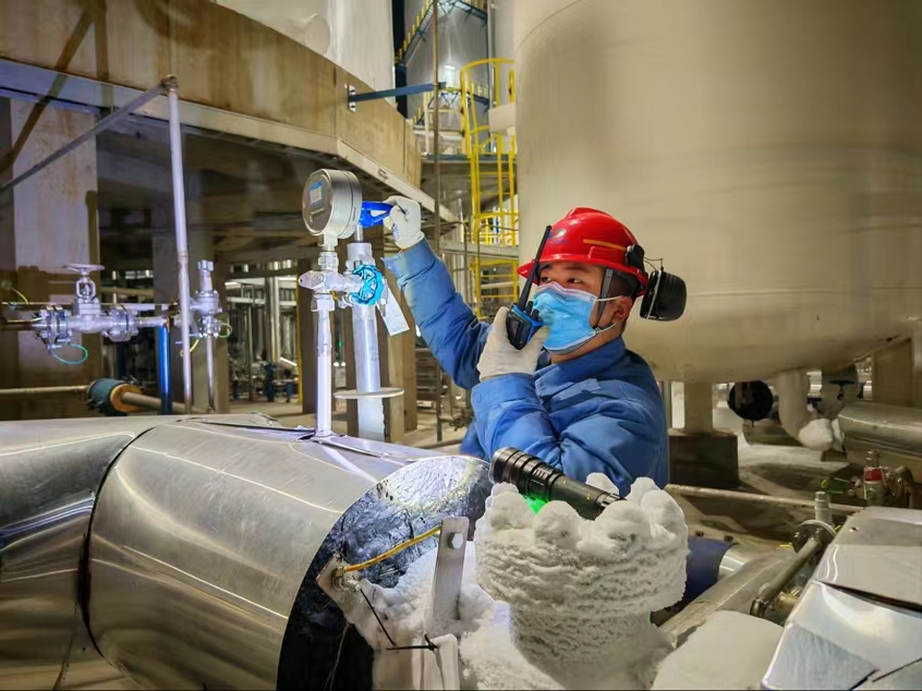“春節(jié)期間,我們一定堅(jiān)守崗位,保持最佳狀態(tài),確保各項(xiàng)工作有序推進(jìn)。” 空分車間員工堅(jiān)定地說道。“春節(jié)期間更要打起十二分精神,不能有絲毫懈怠。” 他們密切關(guān)注著設(shè)備的運(yùn)行參數(shù),仔細(xì)記錄著每一個(gè)數(shù)據(jù)。“走,除夕夜檢查不能停,一定要確保萬無一失。”夜色中,他們頂著瑟瑟寒風(fēng)認(rèn)真巡檢,檢查空壓機(jī)運(yùn)行狀態(tài),保障儀表氣穩(wěn)定供應(yīng)。為了確保后序工段氮?dú)獯祾吆兔芊鈿夤?yīng),空分車間定時(shí)對真空液氮儲(chǔ)槽進(jìn)行充液,為氮?dú)夤?yīng)保駕護(hù)航。