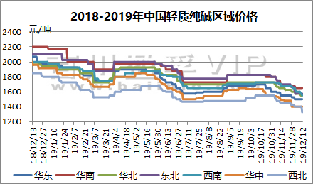 百川資訊及純堿公平貿(mào)易工作站:(2019.12.6-12.12)輕質純堿出廠價格走勢圖